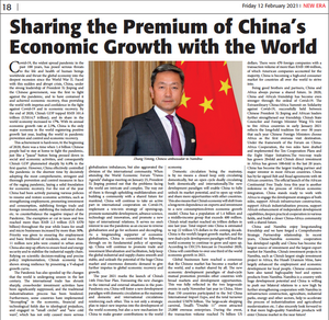 2021年2月12日,驻纳米比亚大使张益明在纳米比亚《新时代报》、《太阳报》、每日新闻网等主流媒体发表署名文章《与世界共享中国经济增长红利》,全文如下: